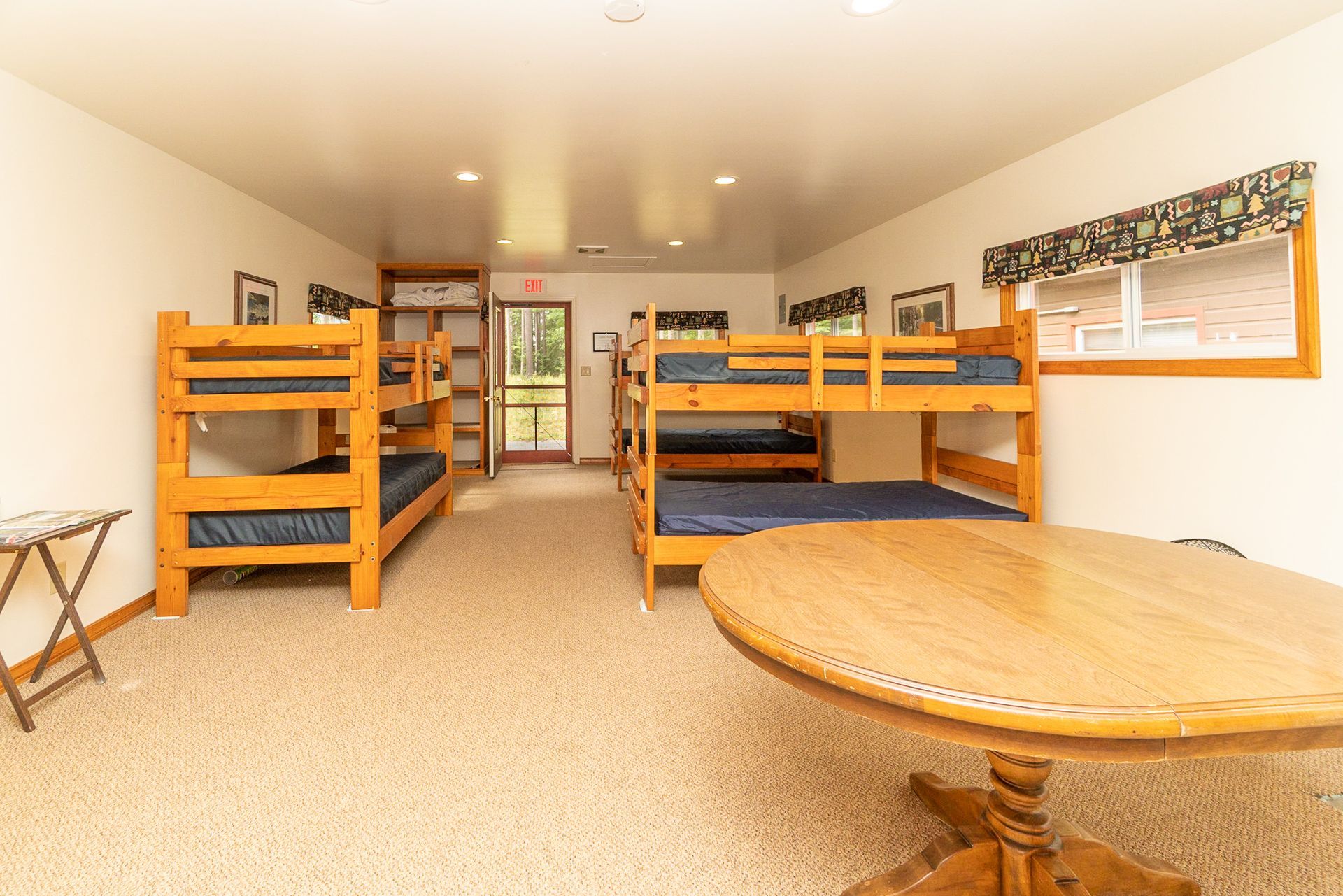 Our five bunkhouse cabins offer a cozy, camp-style stay with modern comfort. Each cabin sleeps up to 10 guests in bunk beds and includes a full bathroom. Originally built when the property served as a YCC camp, these historic cabins have been thoughtfully updated and are fully heated — perfect for group retreats, programs, or gatherings year-round.