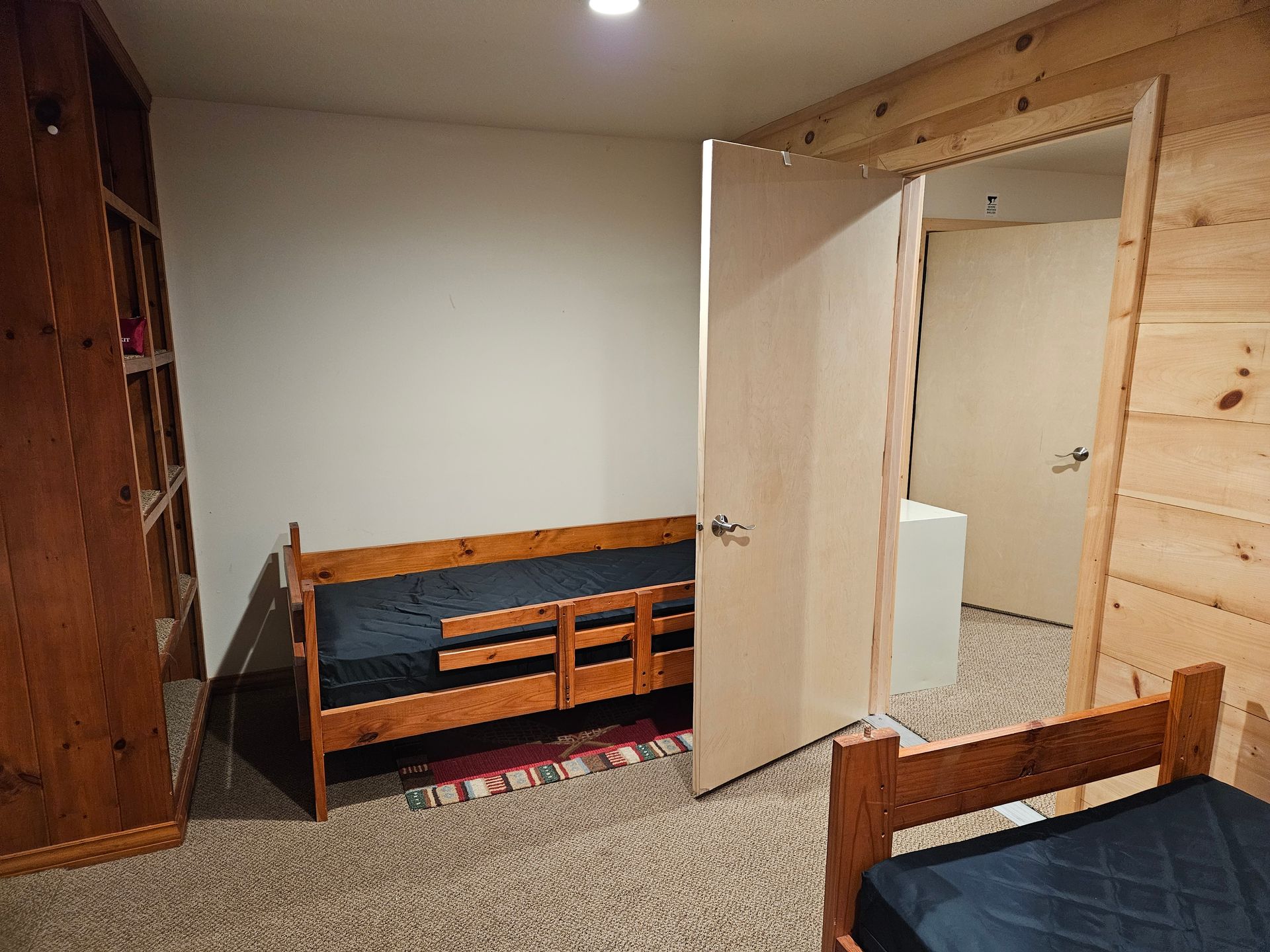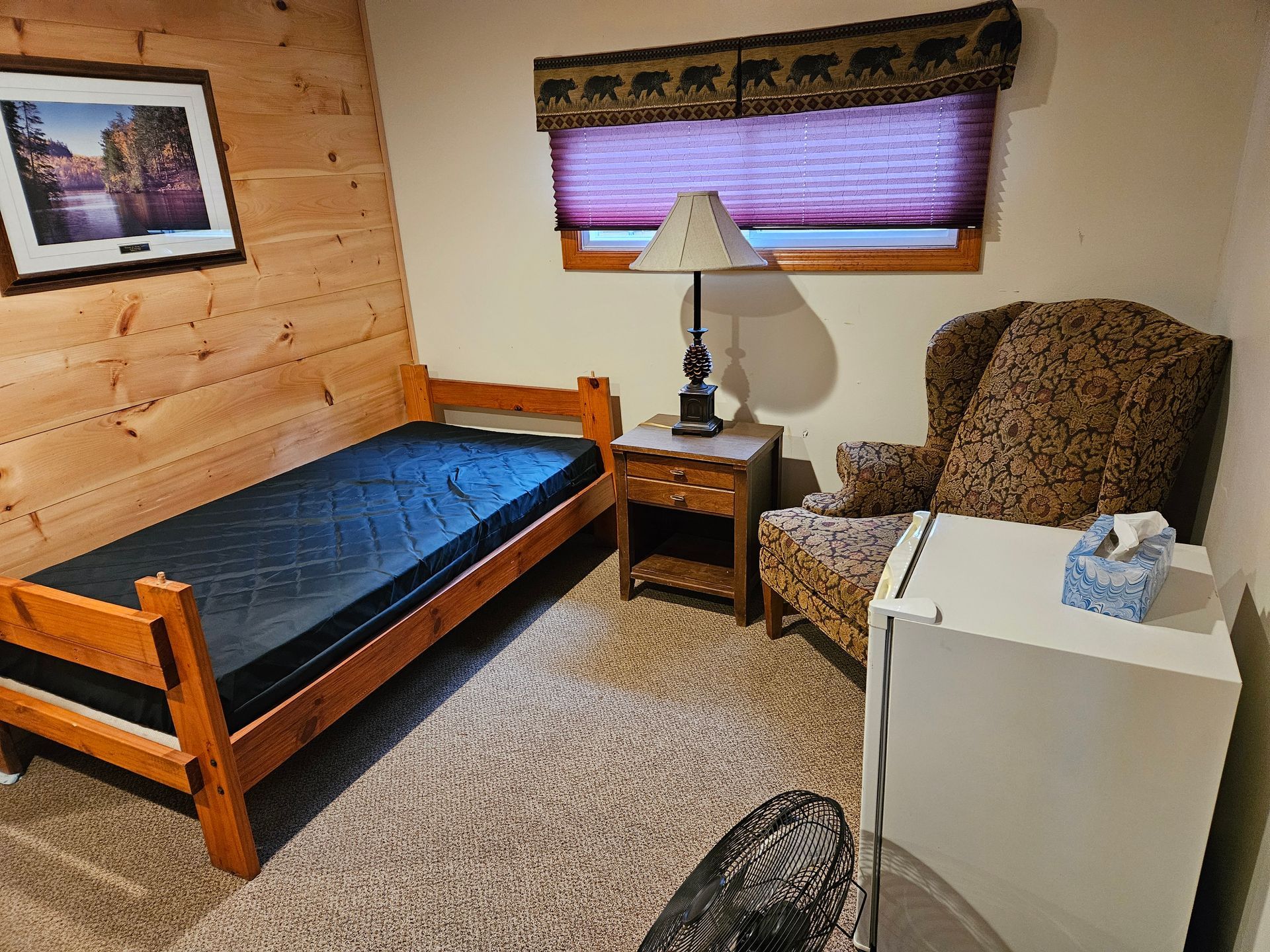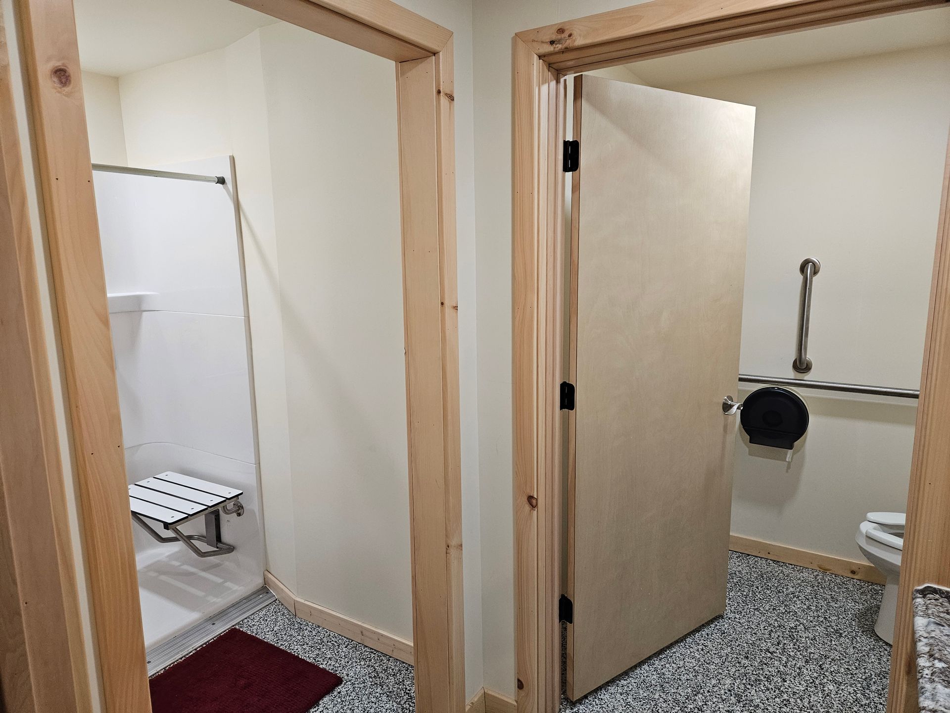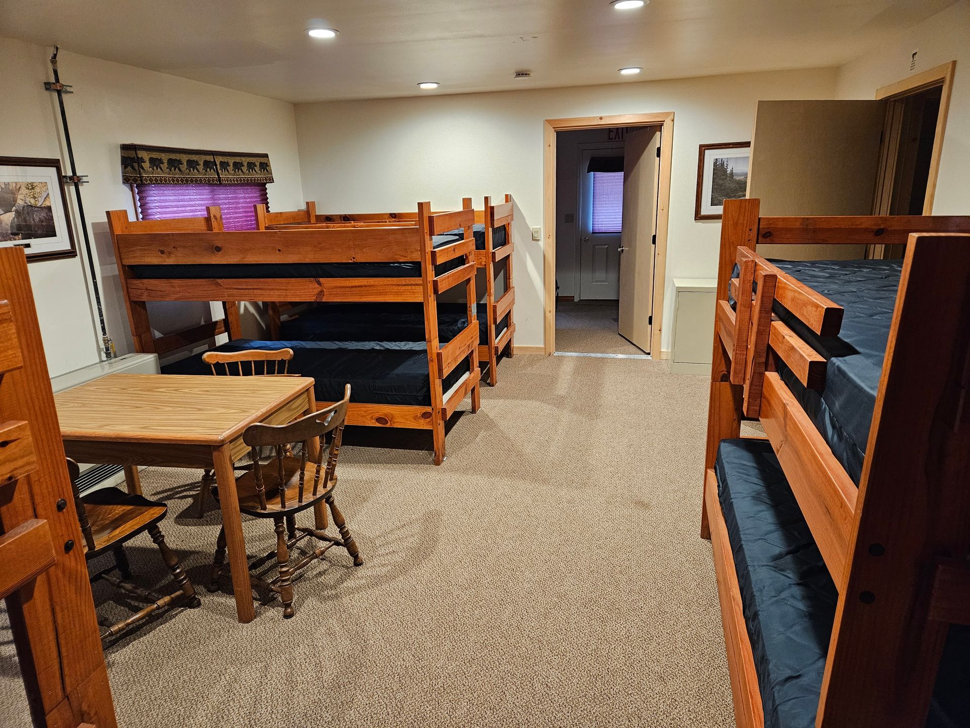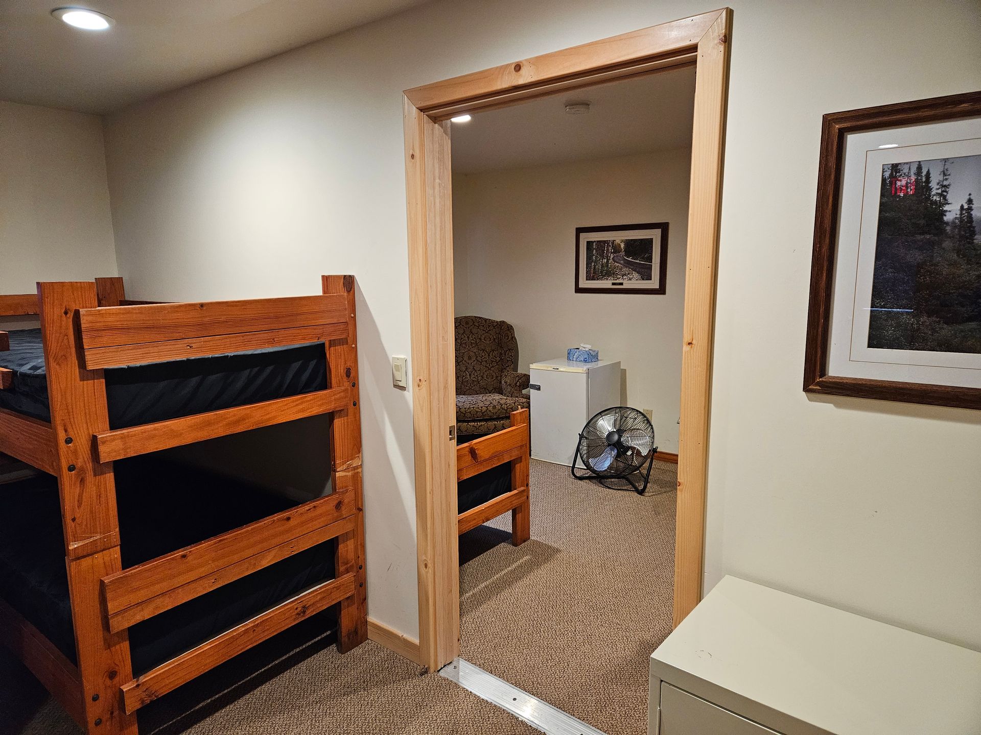 Loon Cabin offers the same cozy, camp-style feel as our bunkhouse cabins, with the added bonus of a small private bedroom in the back. The cabin sleeps up to 10 guests and includes a full bathroom. As part of our wedding weekend packages, Loon Cabin is included and typically used as a comfortable bridal prep space, offering a quiet place to gather, get ready, and enjoy the moments leading up to the celebration.